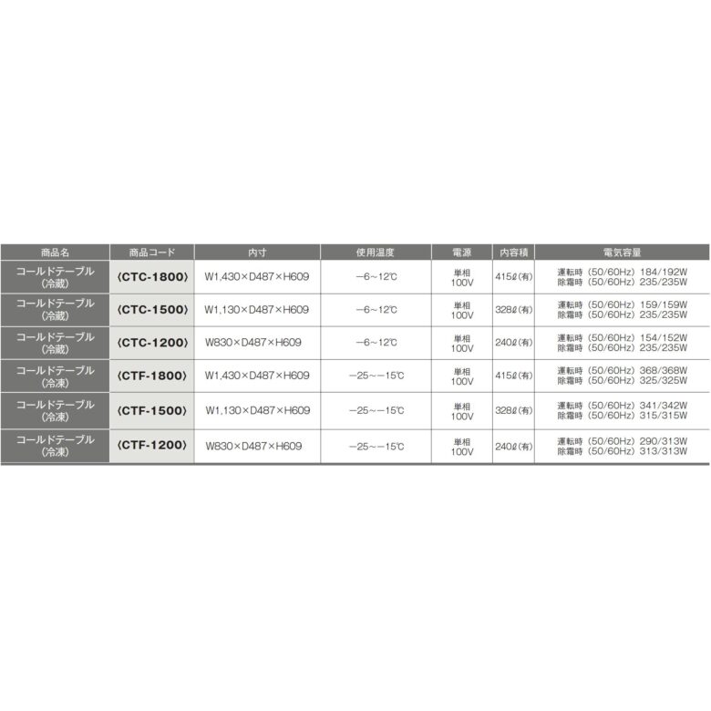 コールドテーブル(冷蔵) W1200